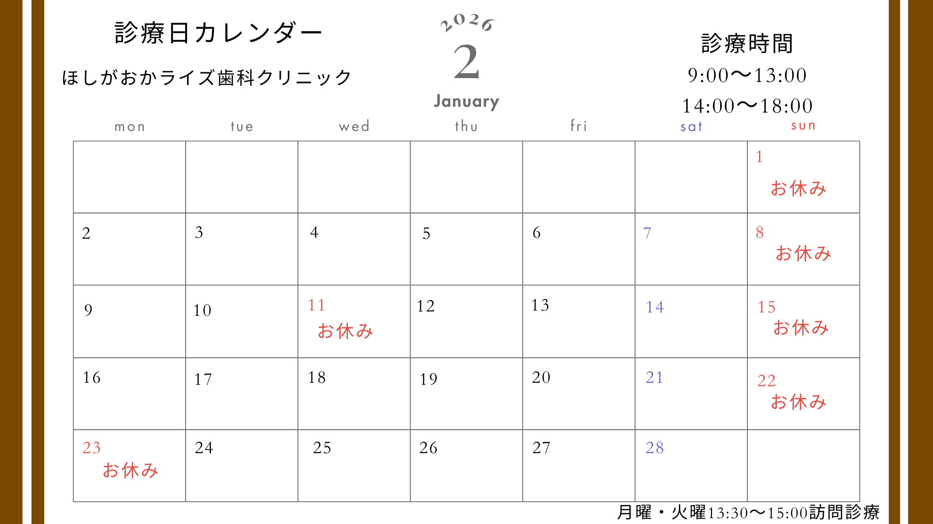 令和8年2月の診療日のお知らせです。